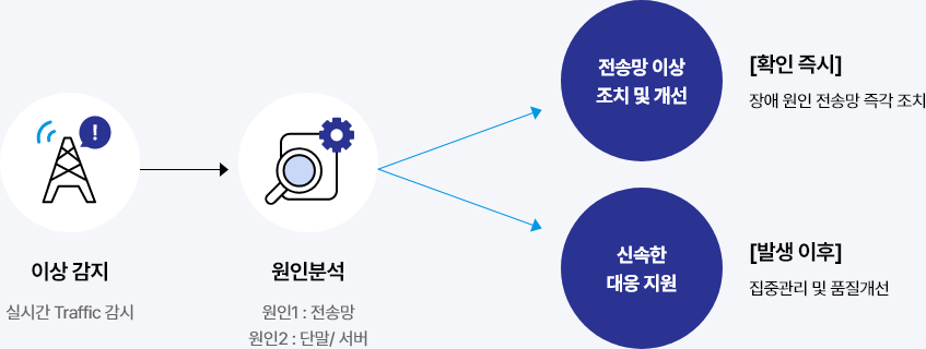 ![실시간 모니터링(IoT 디바이스 상태 감시). 이슈 분석(원인1:네트워크, 원인2:디바이스/앱). 즉각 대응 및 해결. [감지 즉시] 문제 원인 파악 및 조치. 빠른 복구 지원. [해결 이후] 재발 방지 및 시스템 개선](/static/images/IoT/P_PD_MB_SI_001_3_img3.png)